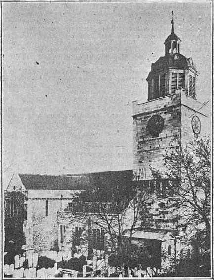 Dedicated to St. Thomas of Canterbury, who before his assassination in 1170 A.D. presented the land for this purpose of the church, St. Thomas’, Portsmouth, now the Cathedral of the new diocese, was completed and opened in 1180 A.D. It is a cruciform building with tower originally at the intersection of the transepts, but when the tower fell in the Middle Ages, it was rebuilt at the west end and the two cupolas of wood added. The bells (originally six) were cast from a ring of five presented by Queen Anne’s Consort, and came from a Roman pharos off Deal. They were eventually cast into eight, with a 25½ cwt. tenor. These were recast and rehung by Taylor in 1912. An ancient peal board is in the tower as follows:-